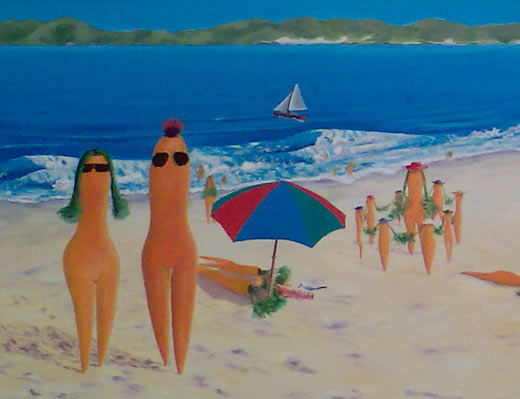 Going through all my submission archives trying to catch up, I came across this one from Drew. Drew sent in one of the finest ever submissions Doggy Style Alsation Rampant, and in the excitement I missed this one Drew also snapped at The Blender Gallery Joondalup. Apparently by Merv Britten. Astounding. In case you are wondering, yes it does seem to be carrots on the beach.