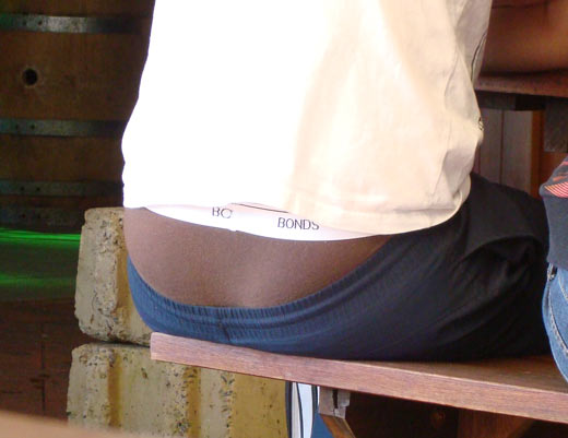 I actually don’t think he’s wearing any underpants. He’s just had the words ‘Bonds’ tatooed around his waist against a white background.