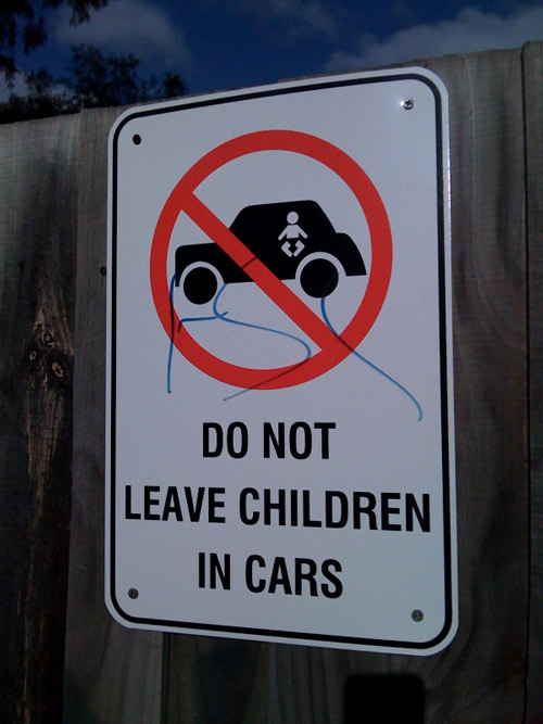 We have signs with a line-drawn teary toddler strapped into its seat, saying ‘never leave a child unattended in a car’. Kind of spells it out. If you didn’t speak English I’m not sure what that sign above would say.