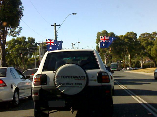 utes with flags is easy, we need a picture of the flags/FIFO/FOWF combination. Extra points for a boxing kangaroo