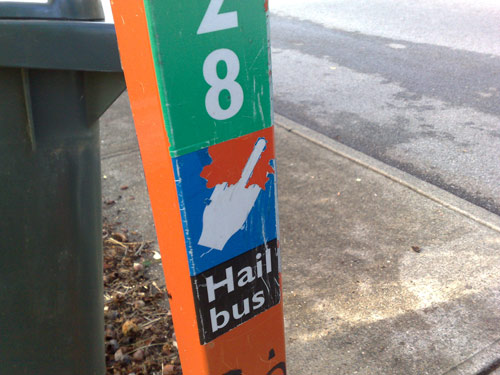 hail a bus that way and watch it sail past.