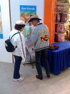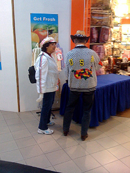 Were some technical difficulties receiving the larger versions of these photos from Kingsley R. which is unfortunate because they are magnificent. An American tourist in Fremantle sporting a possibly handmade map of the U.S. cardigan. I hope he’s visiting Hobart where he could pick up a complementing map of Tassie version.