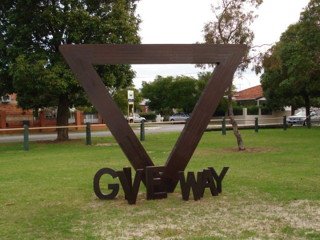That give way sign is in North Perth (cnr Anzac and Scarborough Beach Rd). Give those poor bogans in Scabs a break will ya??