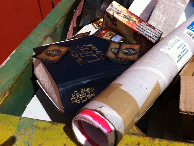 By Meccano. Melbourne. If you’re throwing out your Bible AND Warcraft paraphernalia, there’s only one explanation. Minecraft. I wish Meccano had looked in the Warner Music tube. Tupac anyone?