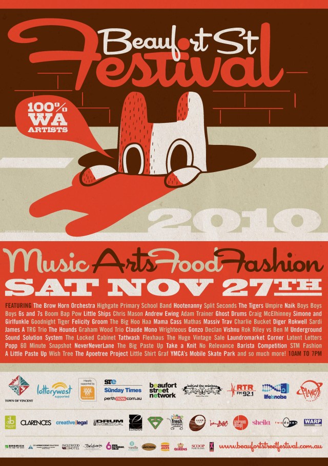 Tomorrow is the inaugural Arrondissement Festival, AKA Beaufort Street Festival. I will definitely be attending. You may well see Cameron Zombie Cave, Comrade Bento, Bedford Crackpot and many other elites. Take your camera. Promises to be Derridarian. Public transport highly recommended. Or ride your fixie down.