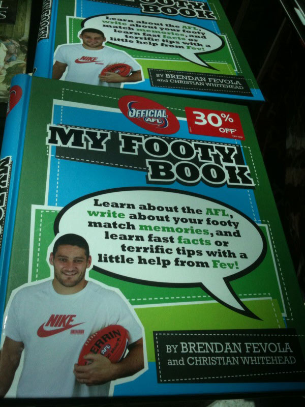 Perhaps while reading “My Footy Book”, it is worth taking a moment to consider the strange quirk of fate that has Brendan earning several hundred thousand dollars a year instead of mowing your lawn or doing your brick paving.