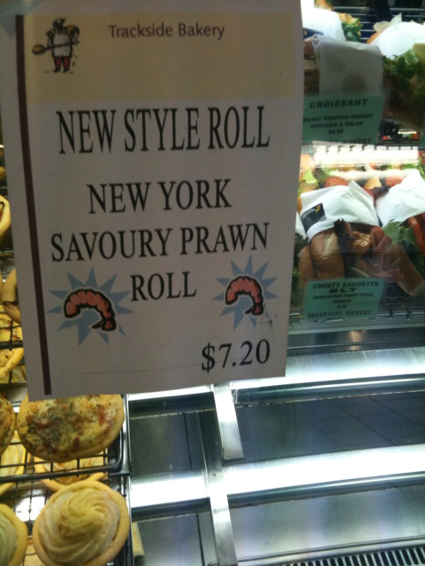 I tried to think of what a New York roll would be and savory prawns had nothing to do with it. Smoked lox, perhaps. Or bluepoint oysters. Or maybe if they just served it to you and then said “fuck off and die.” And expected a tip.