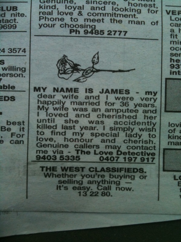 Is “The Love Detective” his nom de classifieds section, or is this actually a business?