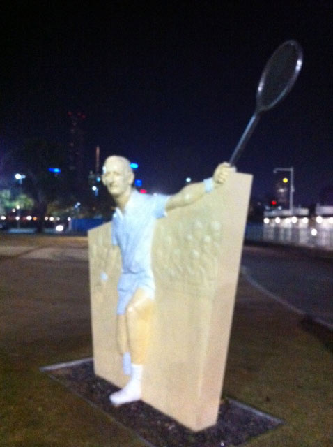 Toodyay needs to step it up. THIS is how you do it. Incredibly bad statue of Rod Laver at Rod Laver Arena Melbourne. By Meccano.