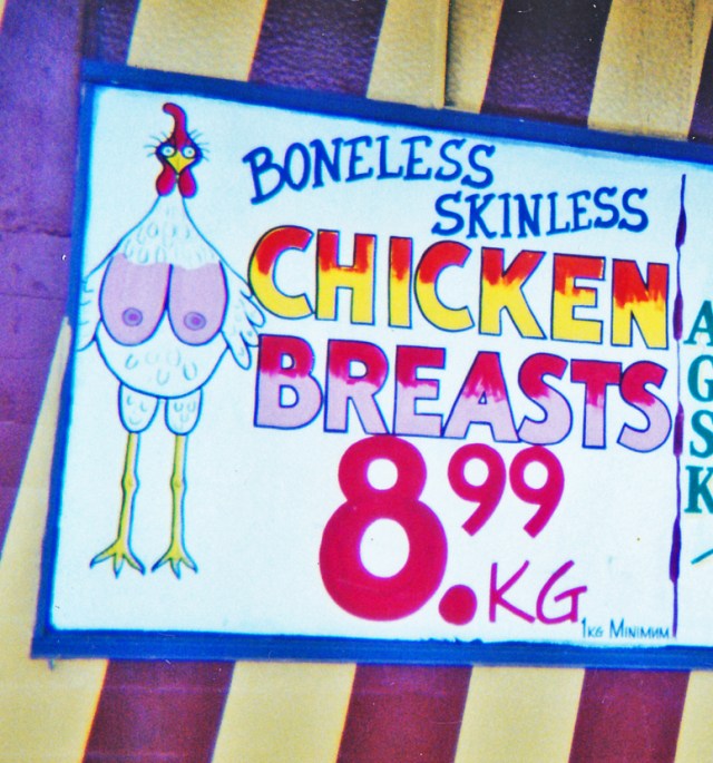 Skinless tits I get, but boneless? Last time I looked tits didn’t have bones.