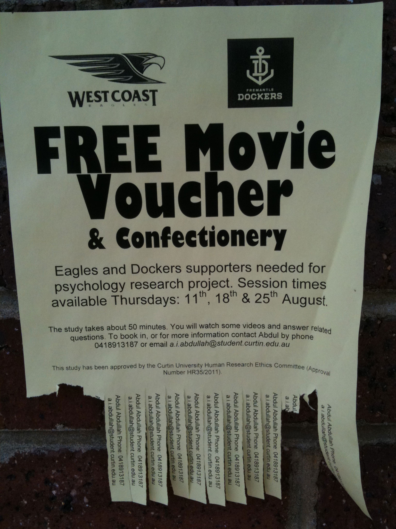 Presumably the lab rats were too smart for whatever is being proposed, hence the need to use football supporters. If this is correct, why wouldn’t you use Collingwood supporters? (Answer below)