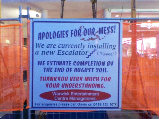 Apologies for our mess!” appears to refer to the sign.