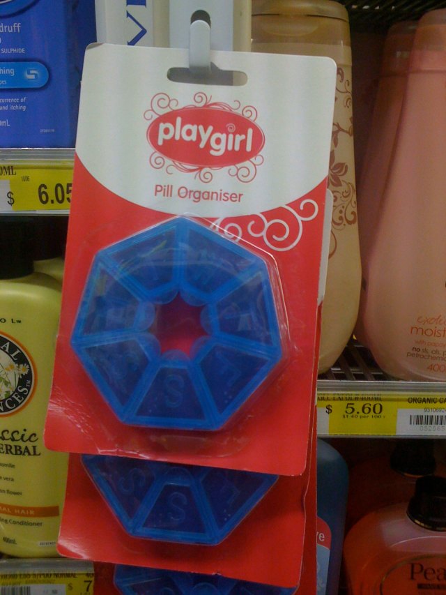 Very, very funny from Cimbali seen in Kalamunda. Aren’t they all Menslands? Also Playgirl pill organiser.