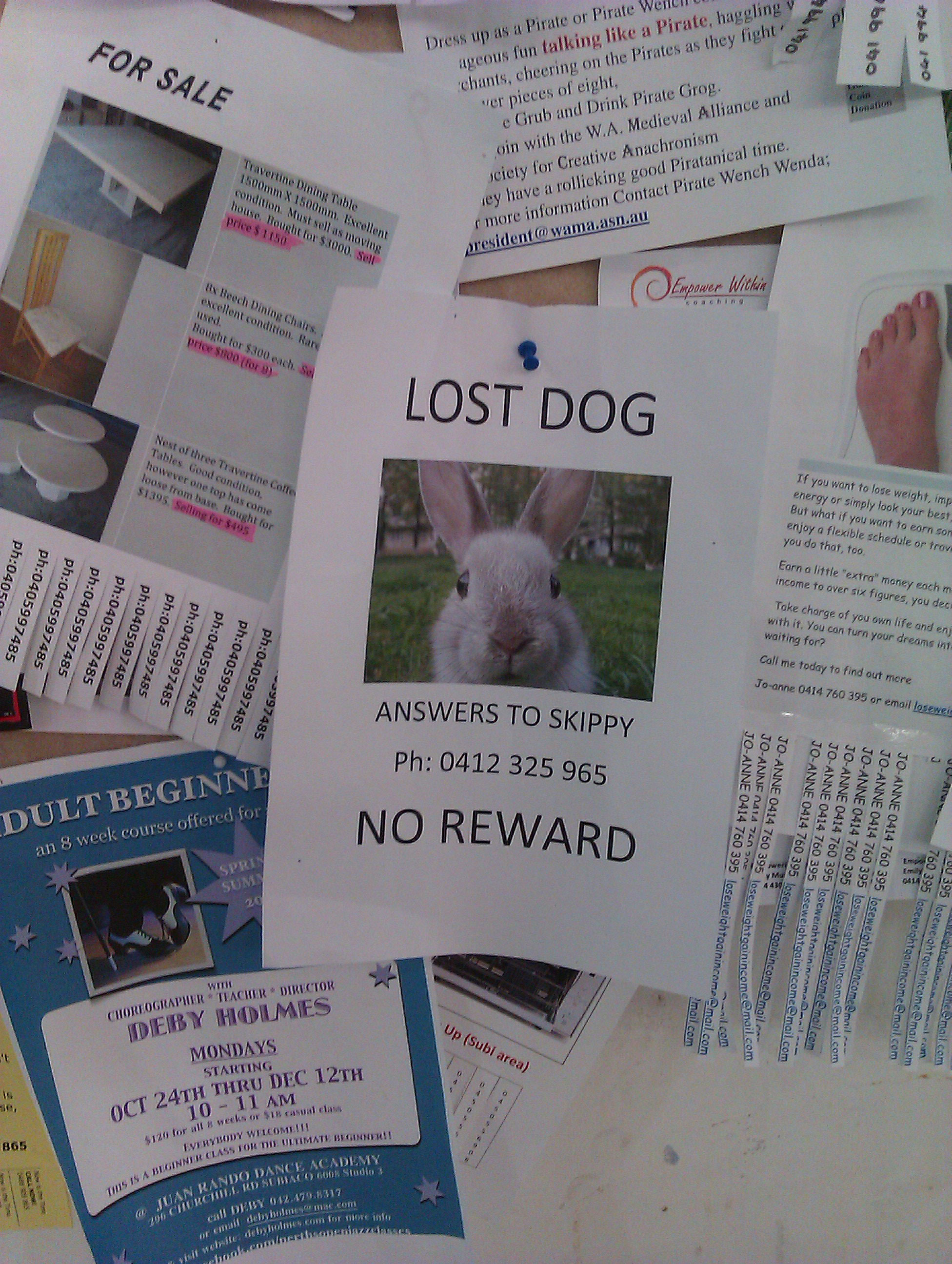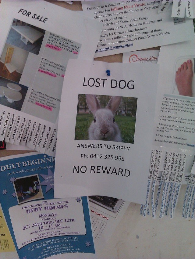 Has anybody rung the number and reported finding the rabbit?