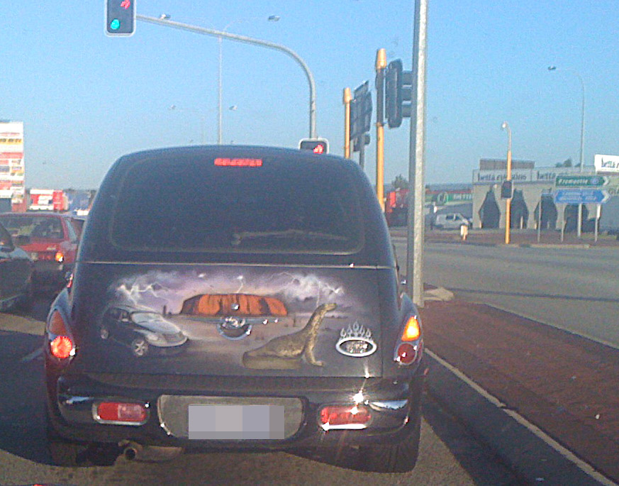 Thats dirsturbing, A P.T Cruiser with that on the back.