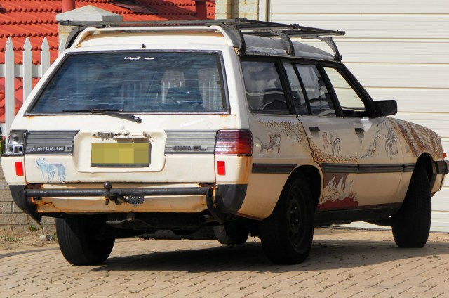 Will the “new journalism” relegate the Sigma – once as vital a part of a journalist’s armoury as a belt made of twine and twigs – to the scrapheap? Look at this example. The decals and roof rack make me think it might have once been the magnificent wagon-lit of a restaurant critic or editor. (Actually only an editor would rate an orca. Dolphins for lower ranks.) Now even a Community news reporter might aspire to a Honda Jizz or Hyundai Night Crawler. By Dylan H.