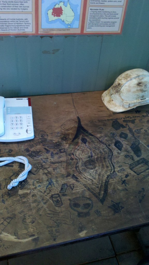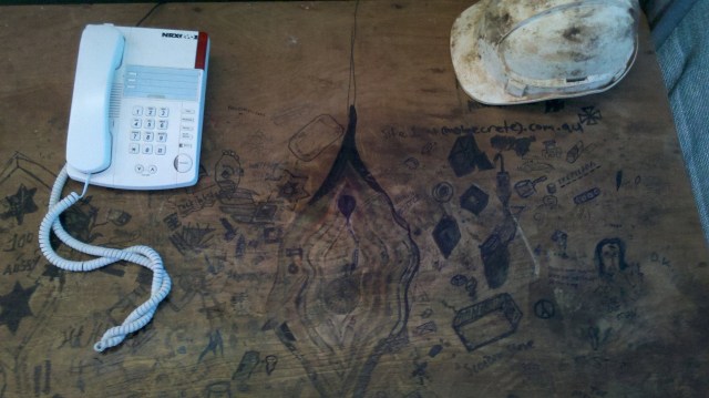 Poignant and actually beautiful shots from Jaidyn Jaxxon, showing the desk in the eastern goldfields from which fifo’s and dido’s call their girlfriends. yes that is a giant vagina, etched in by generations of ball points. And yes, it does look a little like the superpit. Oddly, actually unbelievably, South Hedland hasn’t been inked in.