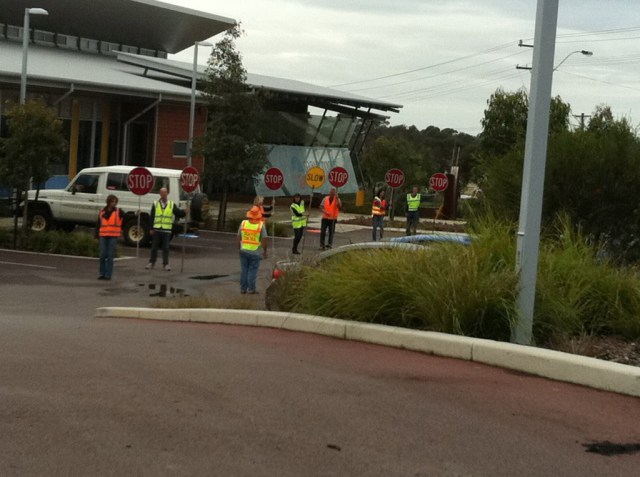 I note the gentlemen have all opted for the single forehand grip, whilst the ladies use the more secure double backhand option. It’s all very well and good looking ‘cool’, gentlemen, but that lollipop becomes a deadly weapon if you’re directing traffic on Marmion Avenue when the sea breeze is in. Just you remember that.