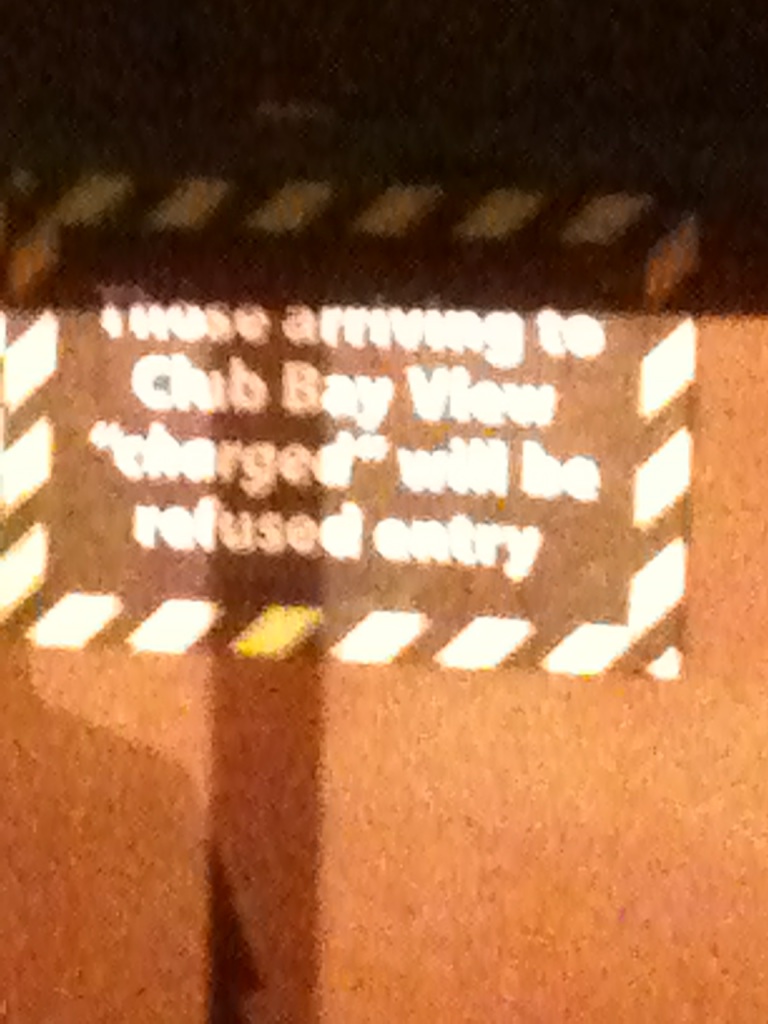 This is extra-baffling. The young people tell me they are charged $10 or something to get into Club Bay View. Surely you’re charged when you go in? This sign is wrongness.