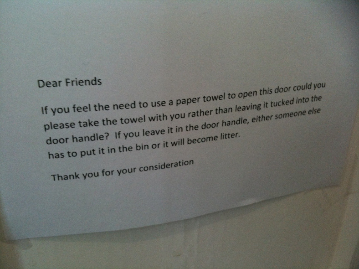 The ultimate passive/aggressive sign/note. Even the font makes me feel tense. There are rules for everything at UWA. Apart from TWoP reporters, who is going to read this in full?