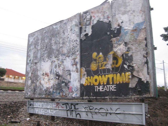 Ahhh! James N. finds a Mt. Lawley billboard being scraped back through the years to reveal a Pizza Showtime ad. Hope against hope that there’s a Peter (Smooth Pierre) Dowding “Labor, a future you can believe in!” poster still waiting for the paint scraper to reveal.