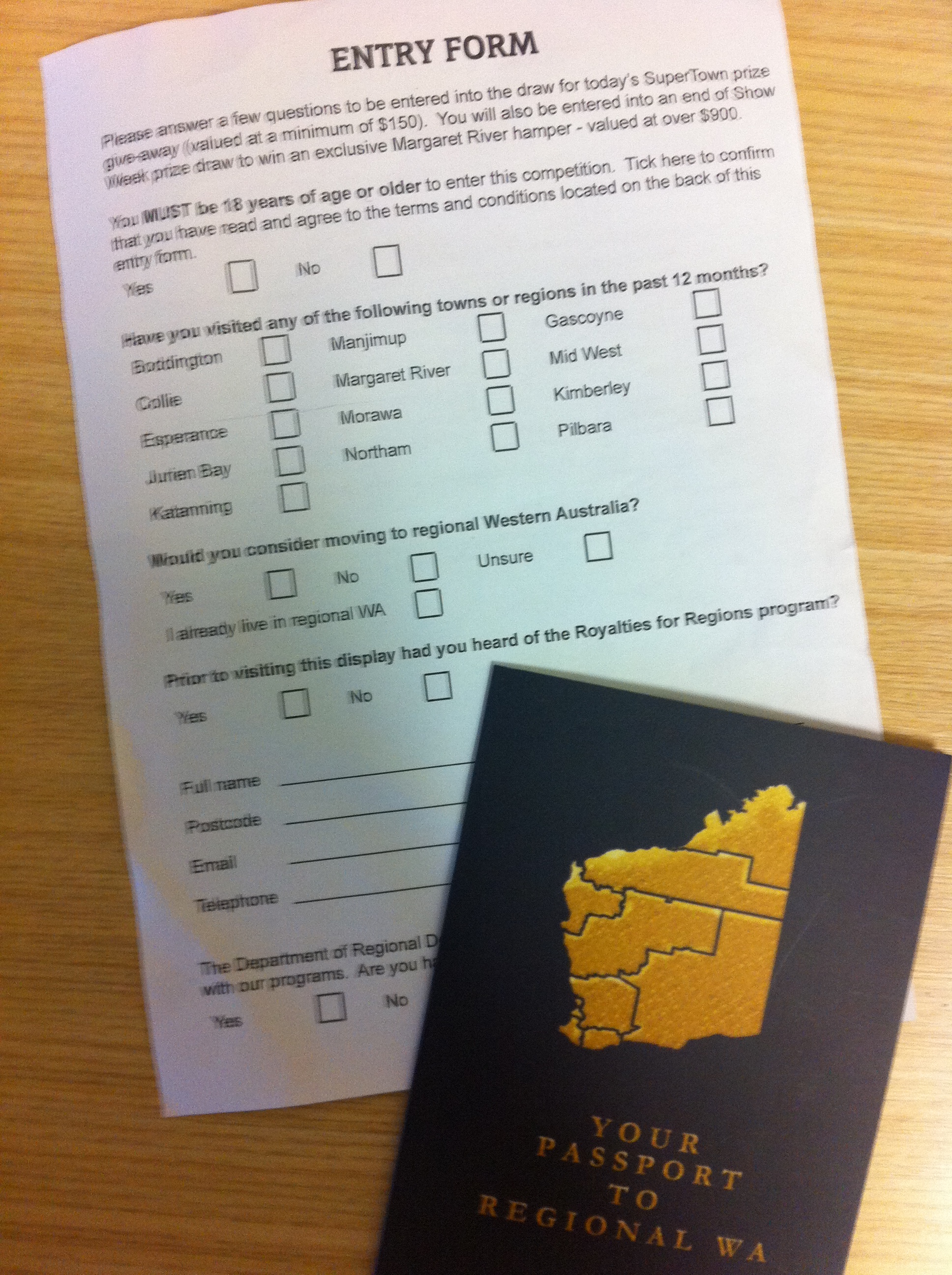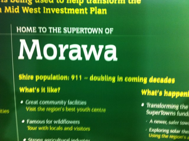 NF#1 went to the show to investigate the “Where’s my subsidy?” stand. Unfortunately NF#1 needs a lesson in holding the fucking camera still when you take a photo you plonker, but in any case. I did like Morawa, “Shire pop 911 – doubling in coming decades”. A population of ghosts it seems. And I love the passport. Might be able to flog them to some people smugglers.