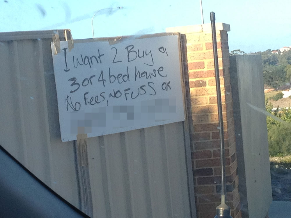 Whenever I wnat to buy real estate, I always signal my willingness do so by scrawling a description of the property desired onto a piece of cardboard and then taping the cardboard to a metal fence somewhere.