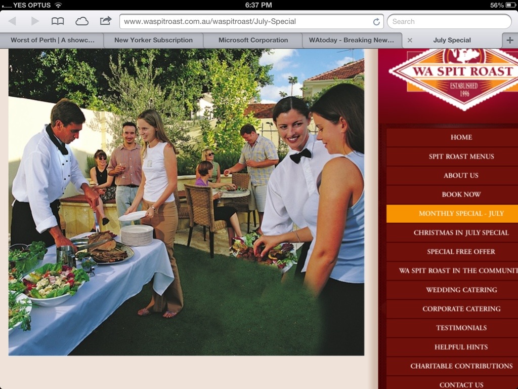WA Spitroast must be too busy preparing juicy roasts, amazing salads and hand tied bow ties for staff members to brush up on their photoshop skillz. I like the sound of Spitroast in the community too. Very much. By Brendan H. I think.
