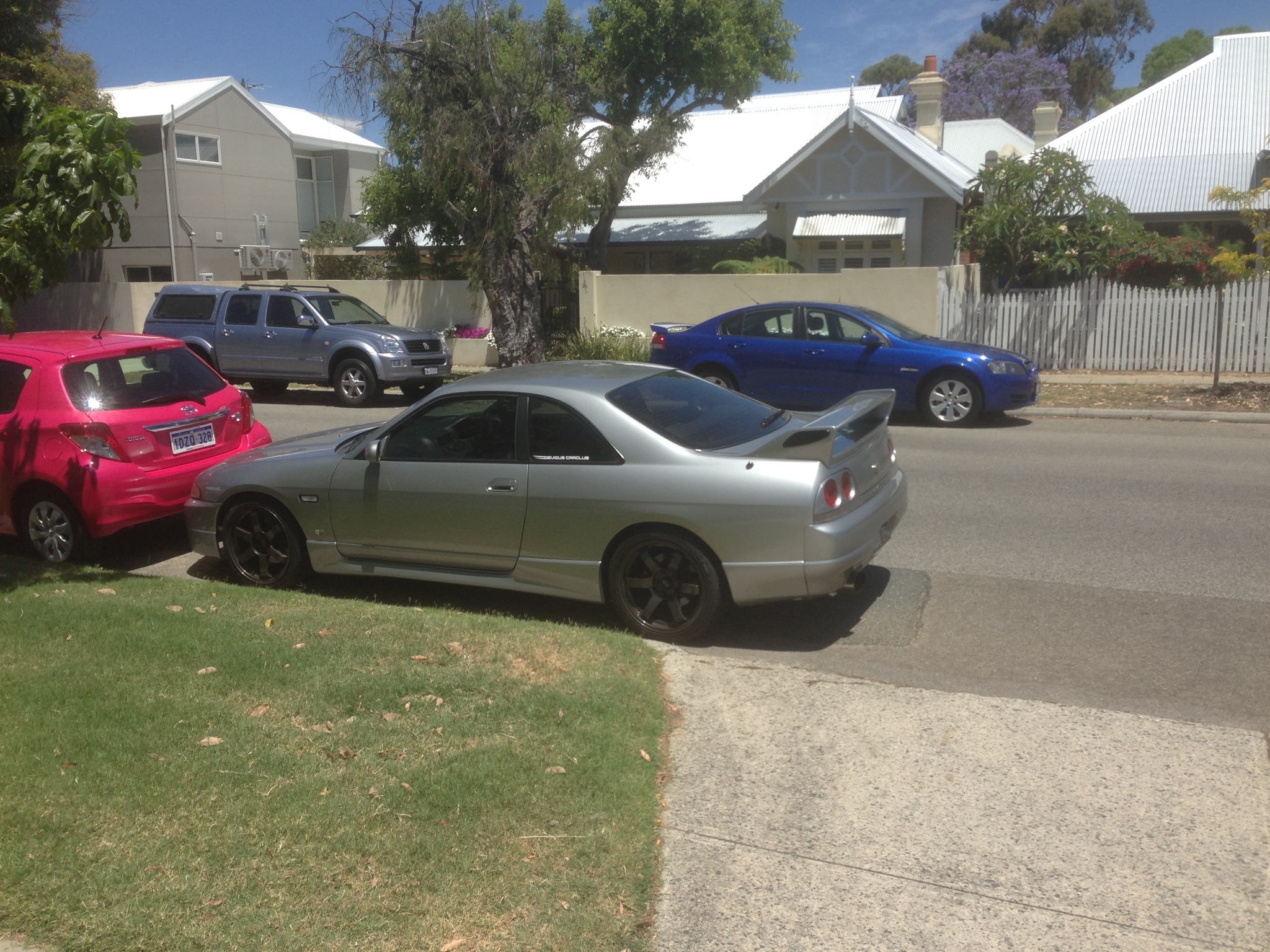 I fail to see anything wrong with that park job, assuming there is ample space for that horrendous pink hatchback to drive forward out of the park and the driveway certainly isn’t blocked.
