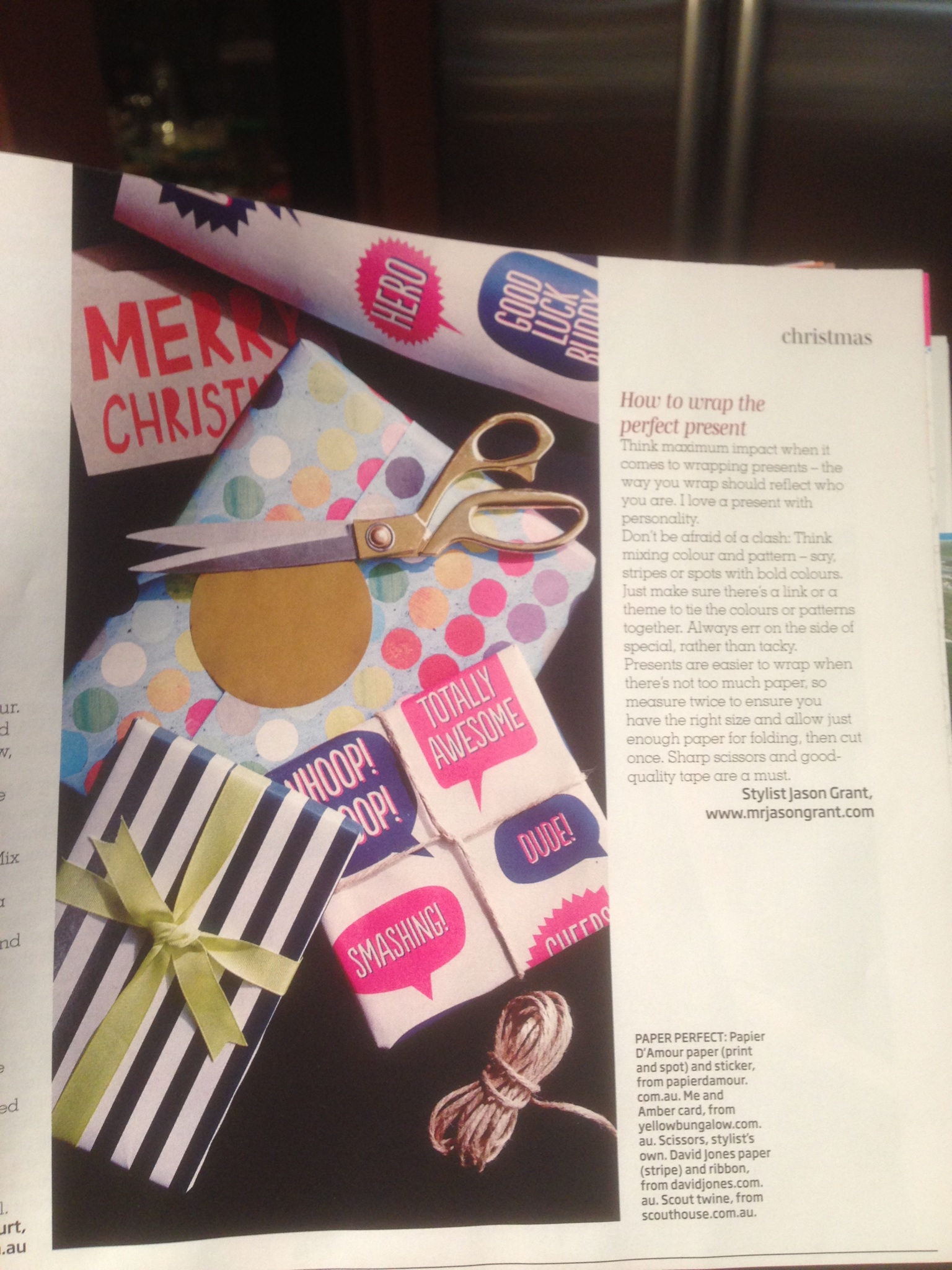 Krazy Kym and I were incandescent with rage after reading this yesterday. “Presents are easier to wrap when there’s not too much paper…sharp scissors and good-quality tape are a must.” And some people wonder why some newspapers are going the way of the dodo.