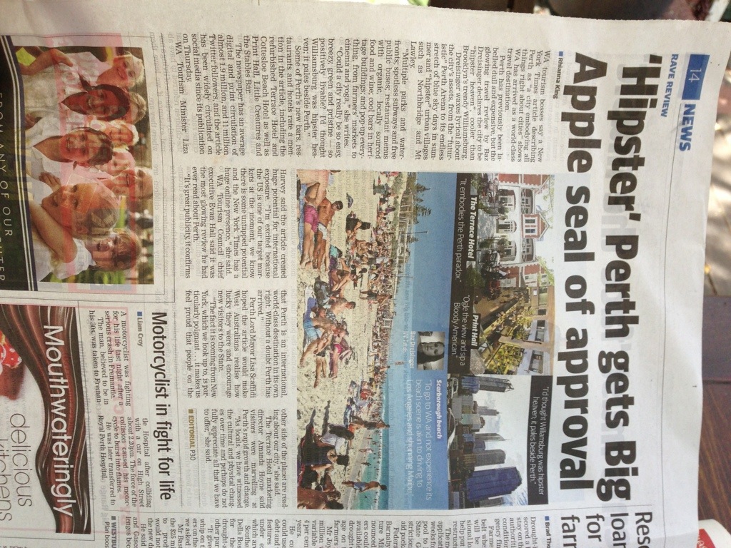 Sorry to piss on this feel good parade of Perth but a nice paid piece written by the City of Perth and the WA Tourism Board which is written for Perth people if you look closer. If you noticed all the WA news outlets grabbed this with gusto and no one else did anywhere…