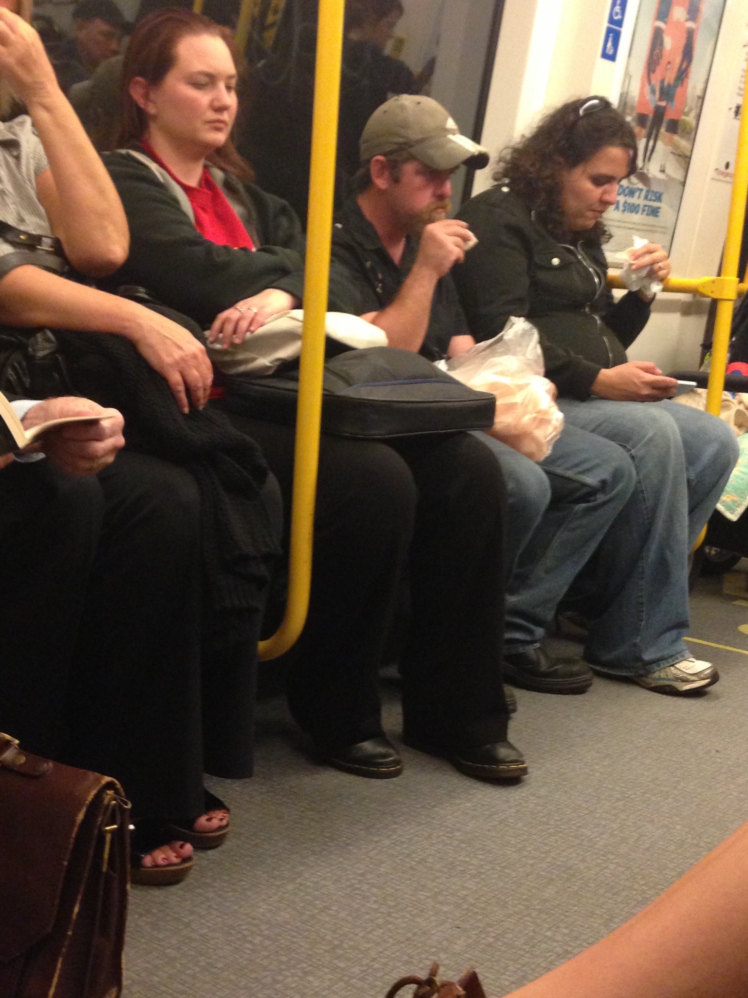 This couple love their prawn crackers: listening to their repast on the way home was gruelling, and it seemed a little early for dinner.