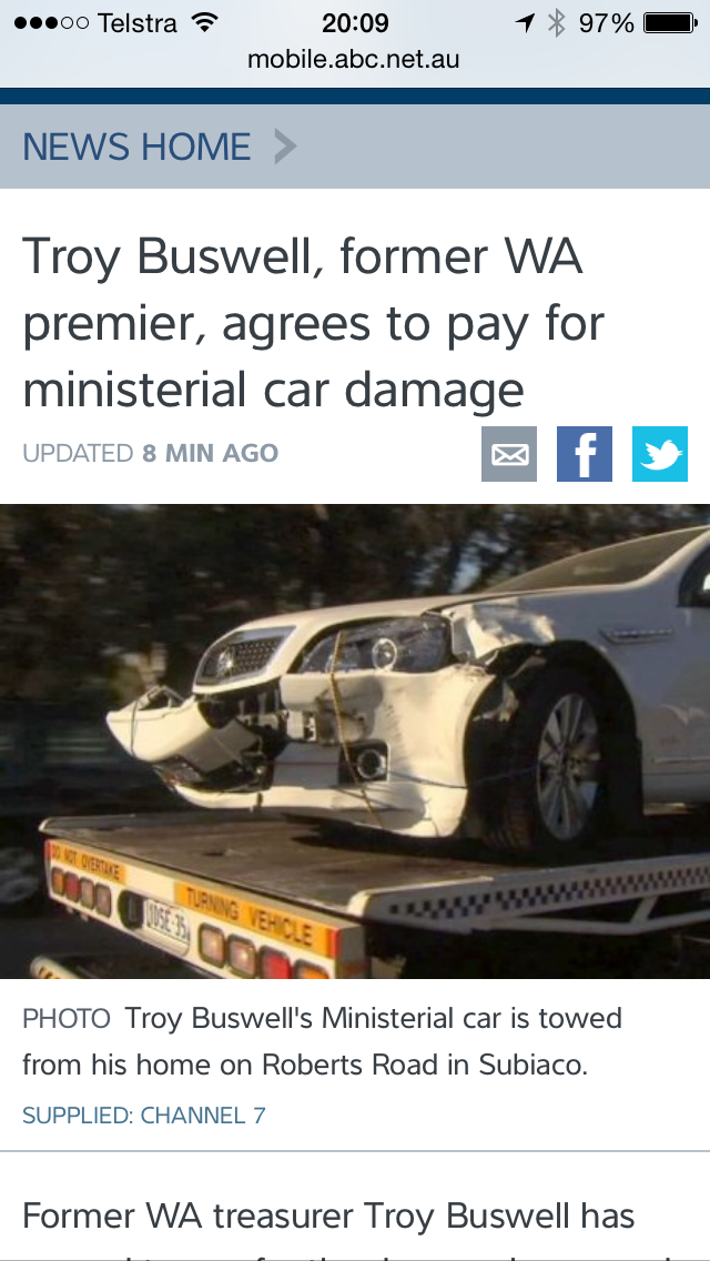 Former Prime Minister Troy Buswell is simply increasing his pension. What WAS the total damage bill in Subi – including the Telstra box?