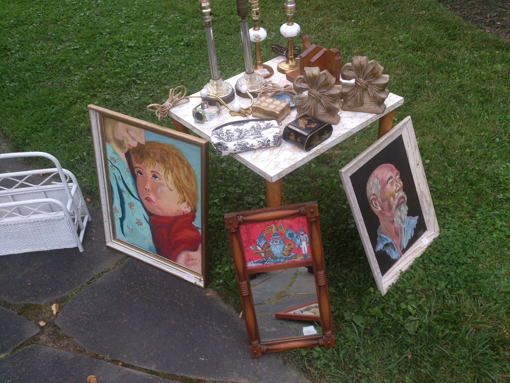 Here we see a happy cross-section of the locals perusing one of the garage sales.