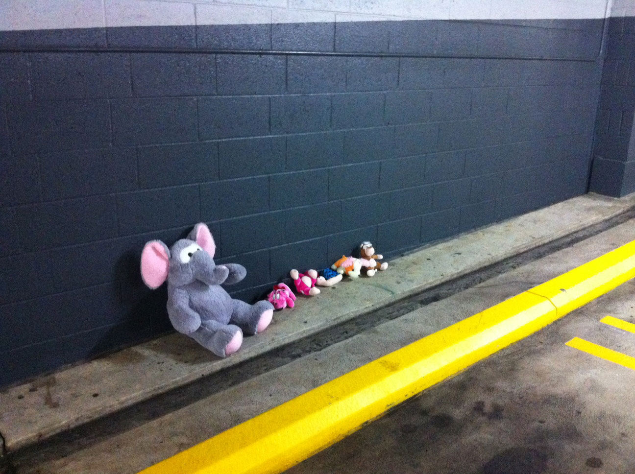 I’d say what happened here, was a car thief had to unload all the fluffy toys from the car he picked out, before he could see where he was going.