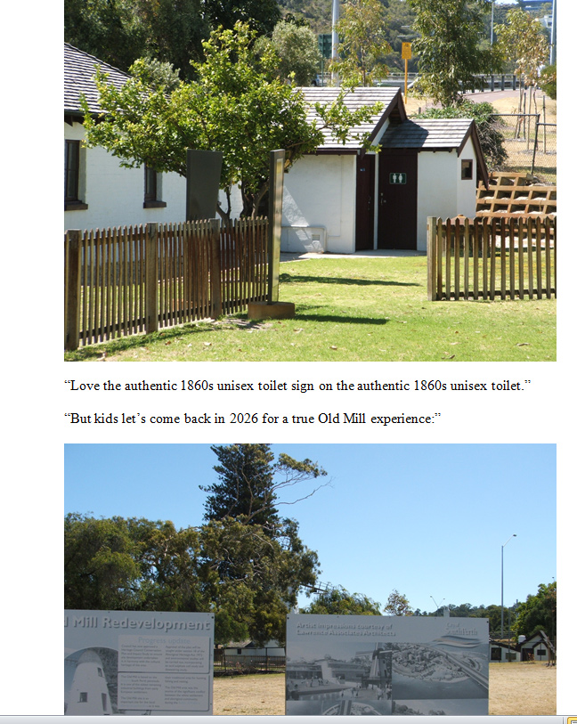 I can’t wait for the $20M redevelopment of the Old Mill – which redevelopment will prominently feature a $15M gold-plated bust of the Little Emperor, gazing fondly across Perth Water at another giant-size gold-plated bust of himself, mounted prominently in front of his other monument to his glory – that waterfront eyesore known as Elizabeth Quay.