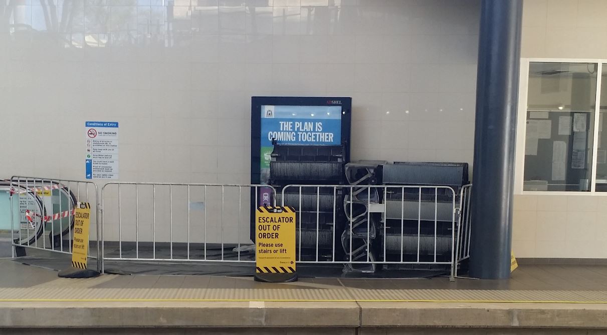 The plan is coming together! But please take the lift or stairs, whilst we apologise for any temporary inconvienience at this point in time. Subiaco train station.