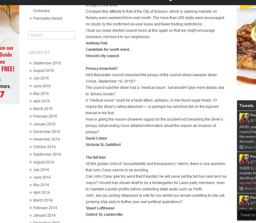 May I talk about myself for a moment? It was a red letter day yesterday when I had my first letter in Teh Voice. Abs Conder, Lofthouse, Buckels: I’m in good company!