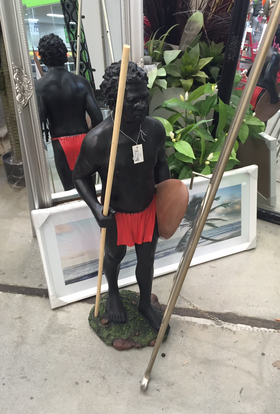 I was tweaking the notion that Aboriginal Australians are depicted in any form of American art, racist or not. Lawn jockeys are indeed objectionable, and not just for racial reasons (historically there have always been black and white versions); the treatment of jockeys has historically been one of the sports’ world’s most shameful episodes.