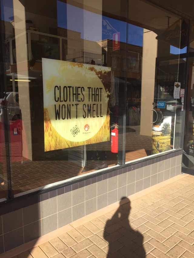 Presumably she shops local for her ladieswear. Now with NoStink technology!