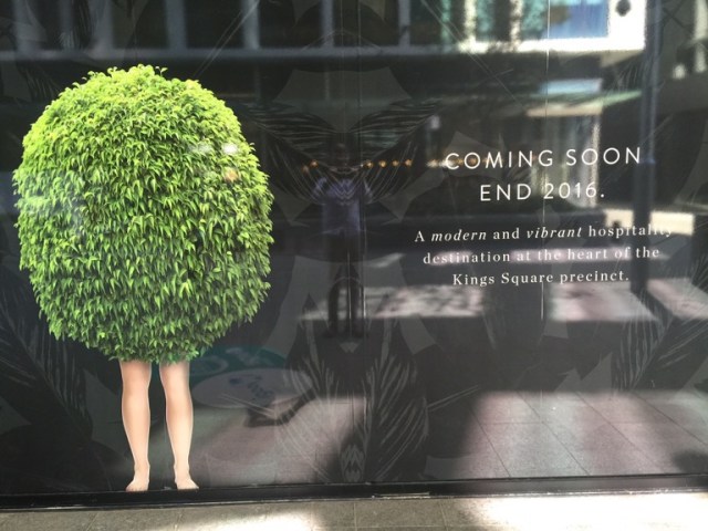 Bento claims that full bushes are not back. They are back, and they are modern and vibrant as hell. Also still not played is naming things after royalty. The imaginatively named and oddly deserted Kings Square precinct.