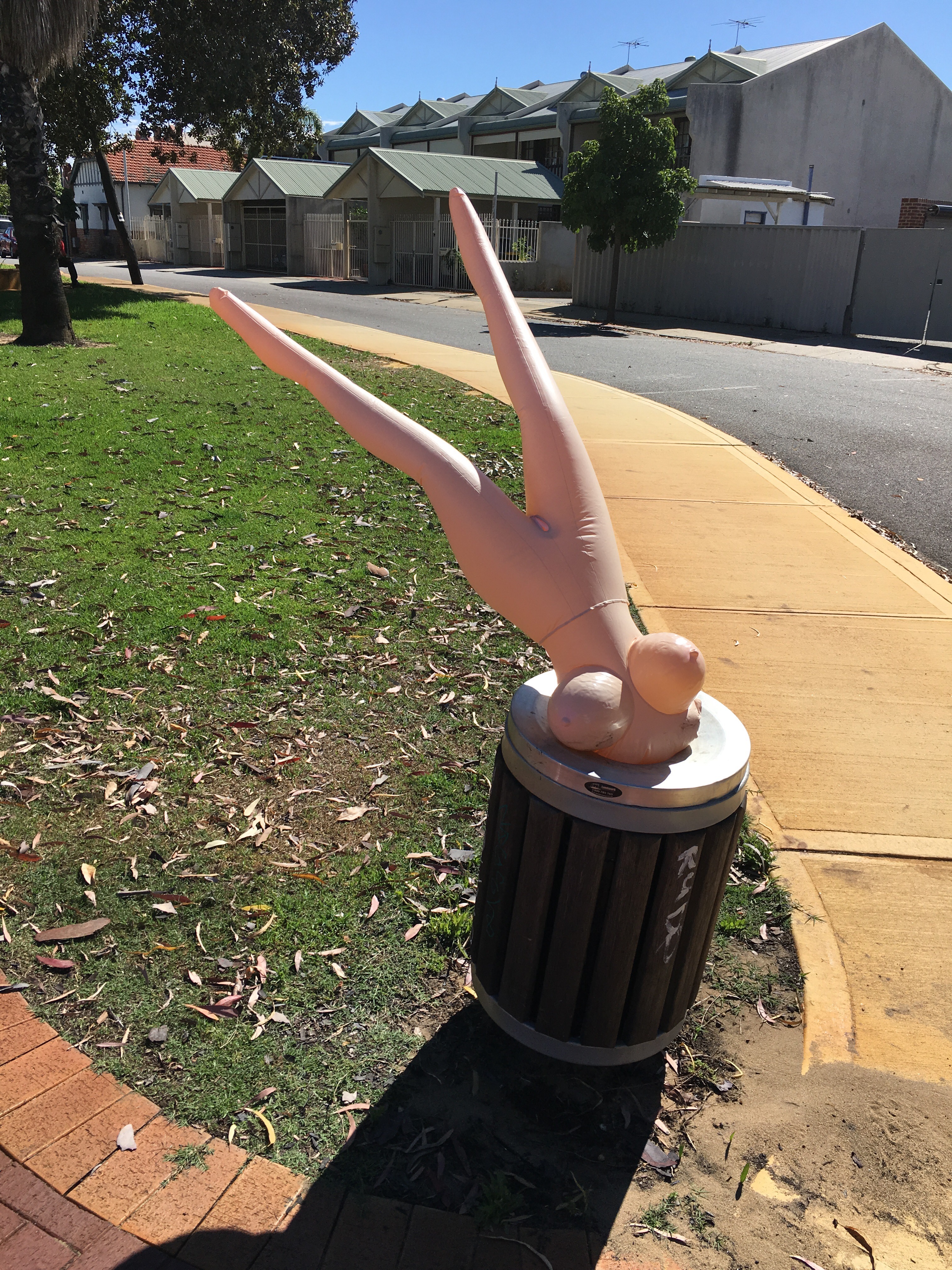 An art work of course, endorsed by the City of Vincent tit-led “Love can end badly, tits up in the bin”.https://goo.gl/maps/5VYivSeuFnJ2