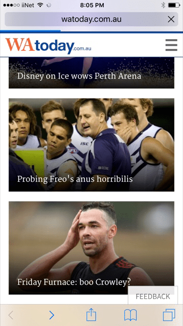 When this arrived at my workplace some time ago, I was confused and disgusted in equal measure. Now, I’ve come round. Let’s get this baffling glory hole back in place. I’m ready for it. I have been assured that Matthew Pavlich’s body can take at least one more year’s humiliation. Why? Why was this…thing…a thing? I pixellated the Councillor. He has suffered enough.